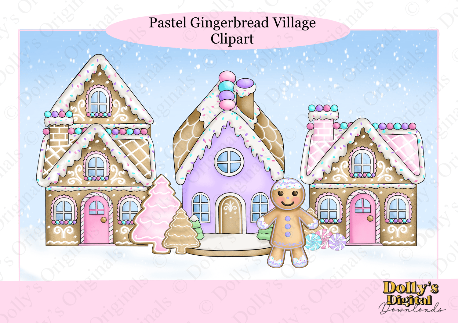 Includes the Pastel Gingerbread Village Clipart Pack (20 PNGs)