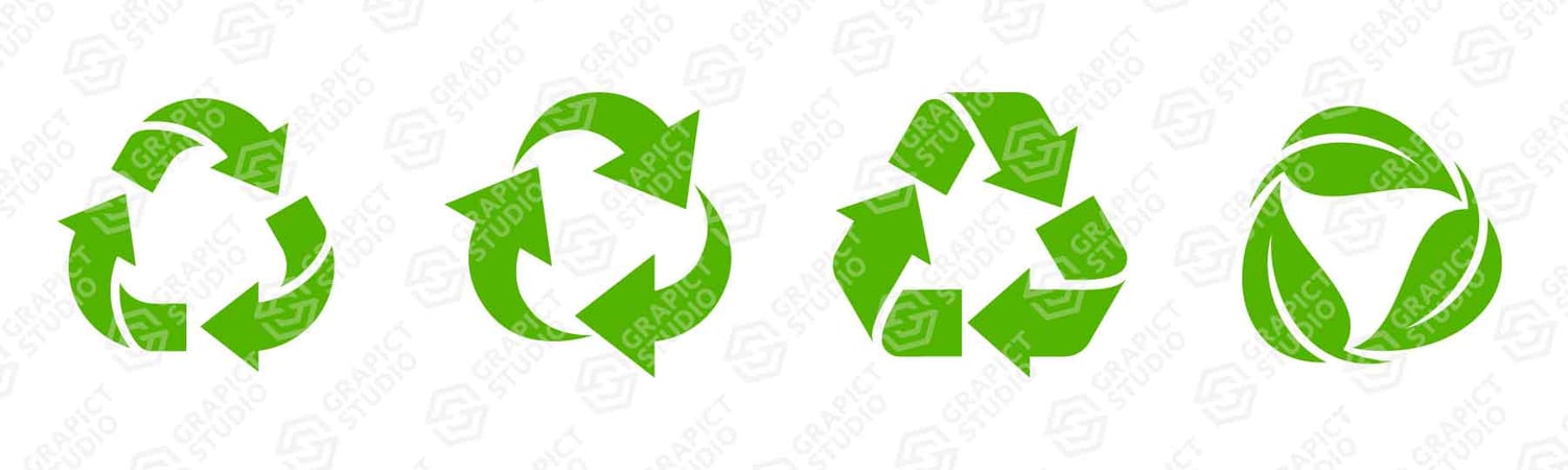 Recycle icon set, design element suitable for websites, print design or app. Glyph style. Vector clipart image, graphic design element.
