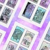 (The mini version cards can be printed on sticker sheet paper like this one: https://amzn.to/3U3ElGW (or just glued after cutting them out) and used as convenient little card stickers for your tarot journal).