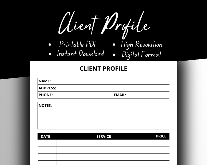 CLIENT PROFILE Printable PDF | Instant Download | High Resolution | Digital Format
