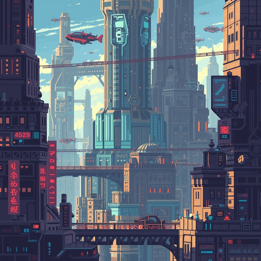 Ideal for designers, Pinterest creators, and sci‑fi art lovers seeking bold, immersive neon‑lit aesthetics with a premium pixel‑art finish.