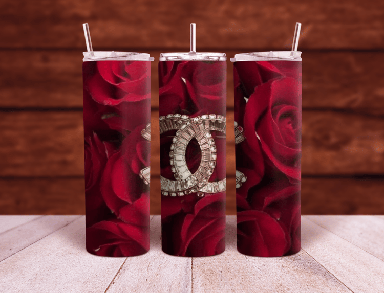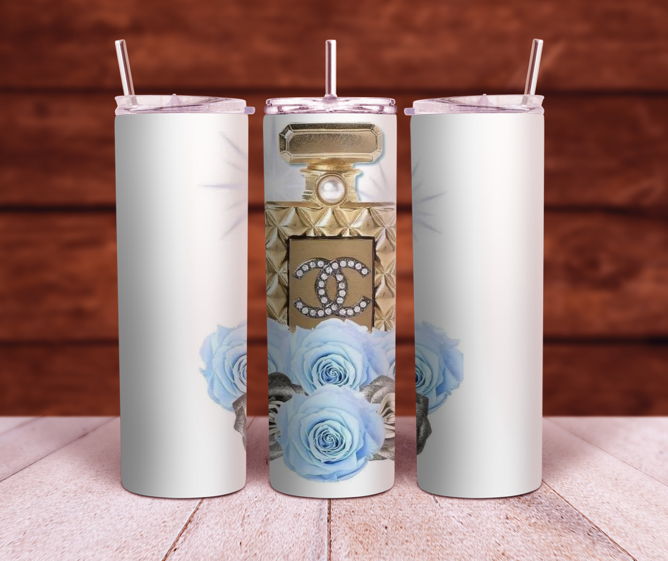 Chanel Perfume with flowers 20oz and 30oz Sublimation Tumbler Wrap PNG