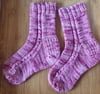 The sample socks were knit using a 75% merino/25% nylon blend fingering weight yarn.