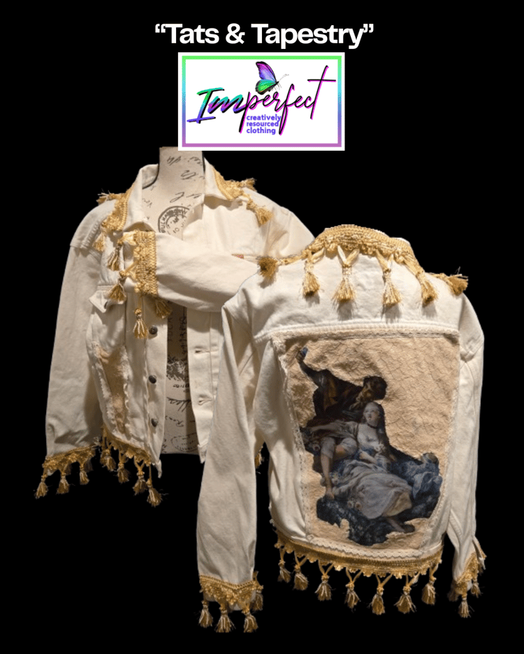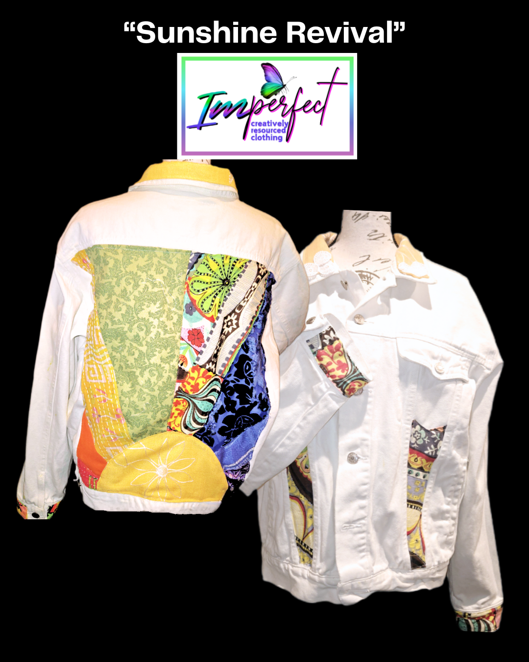 Proof that patchwork is harder than it looks—especially when you're an English teacher doing geometry with fabric. But hey, after surviving THOUSANDS of students, these angles, the symmetry, and a mild existential crisis, this jacket came out radiant. It’s wearable sunshine with a side of math-induced madness. One-of-a-kind, since an encore performance may not happen until I fully recover. 🤣😅😆