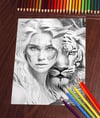 Jungle Goddess Woman with Tiger #20 Beautiful Coloring Page, Adults & kids- Instant Download - Grayscale Coloring Page - Gift, PDF