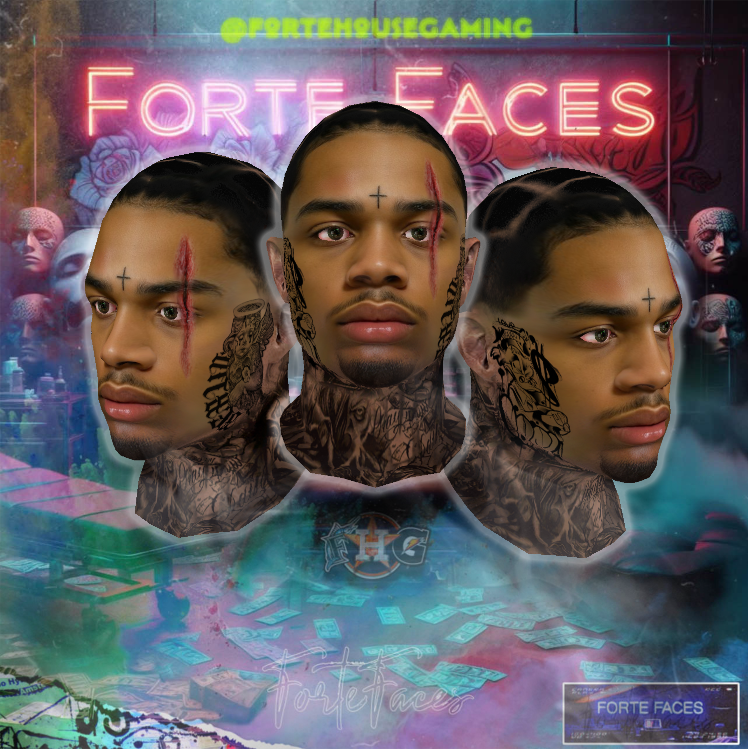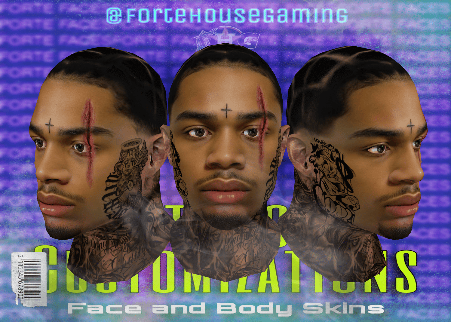 - Custom chin hair, tattoos, and lip detailing for added personality