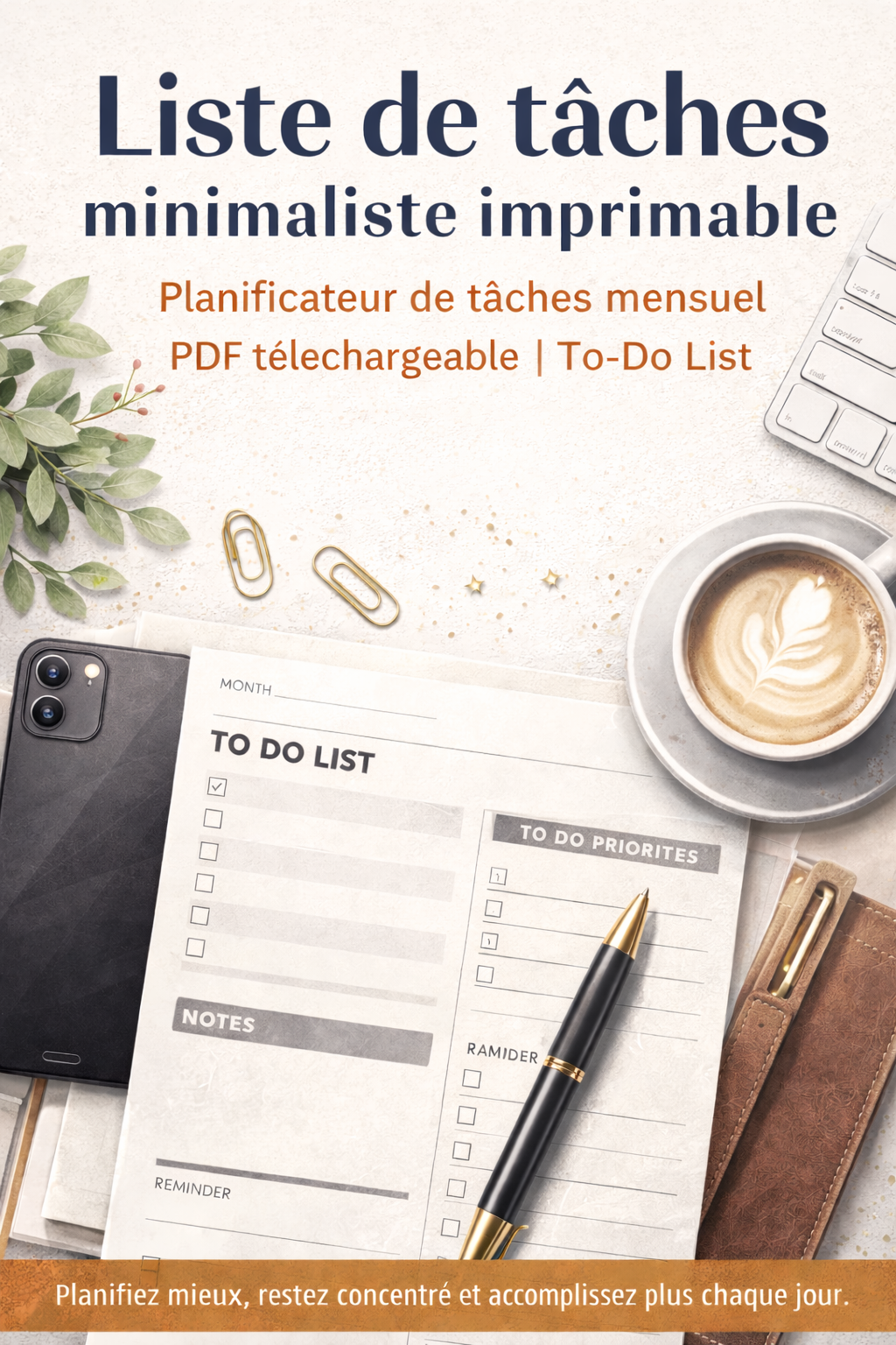 Organisez votre quotidien avec cette liste de tâches minimaliste imprimable, pensée pour améliorer votre productivité.