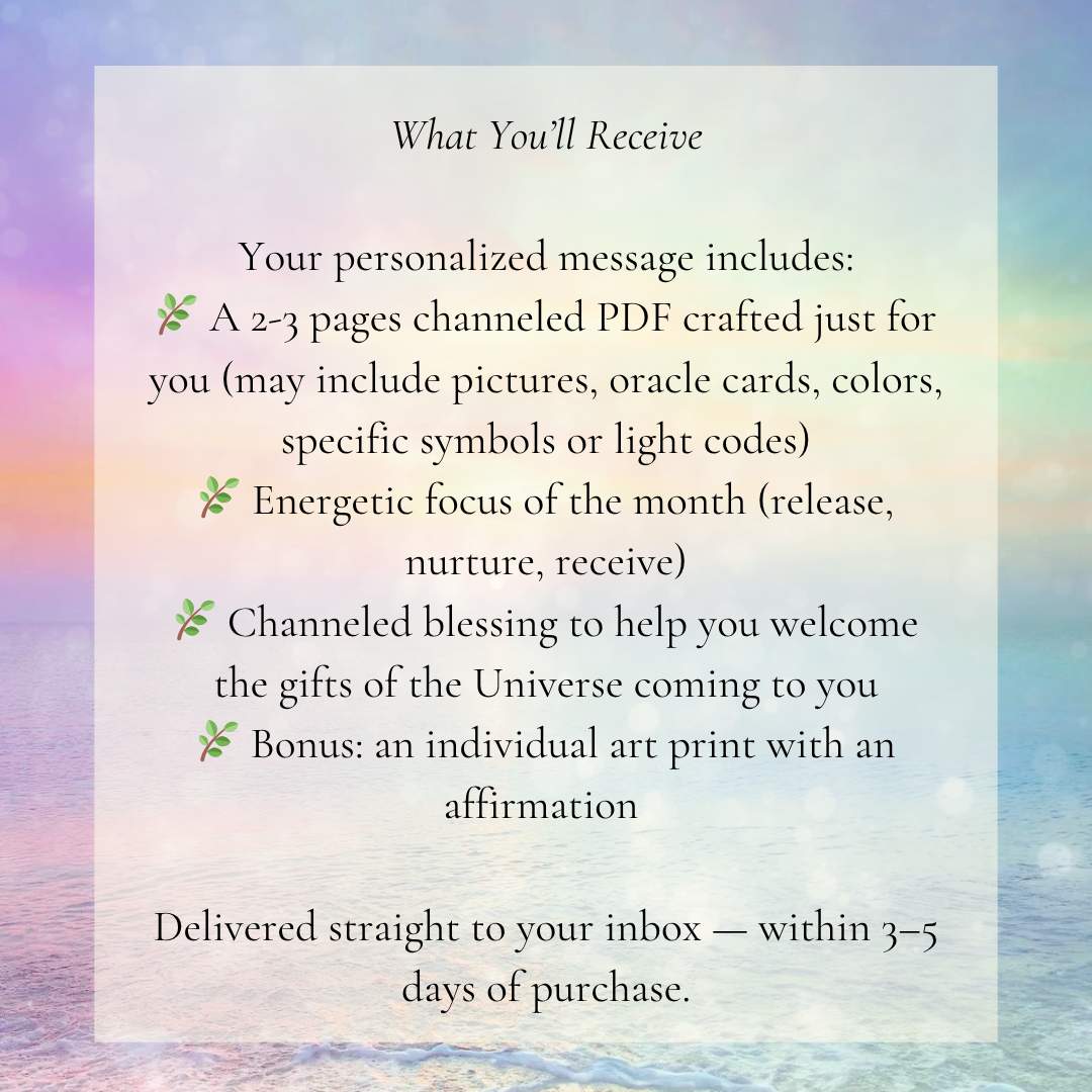 ✨ A 2-3 pages channeled PDF crafted just for you (may include pictures, oracle cards, colors, specific symbols or light codes)