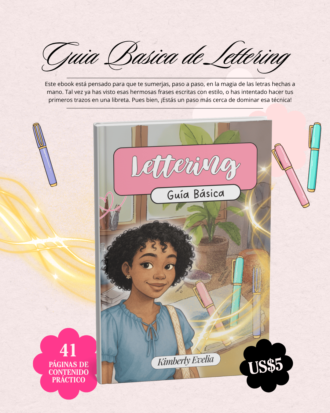 Con mi Guía Básica de Lettering aprenderás, paso a paso, a crear letras hechas a mano con estilo, fluidez y mucha personalidad. 🖋️