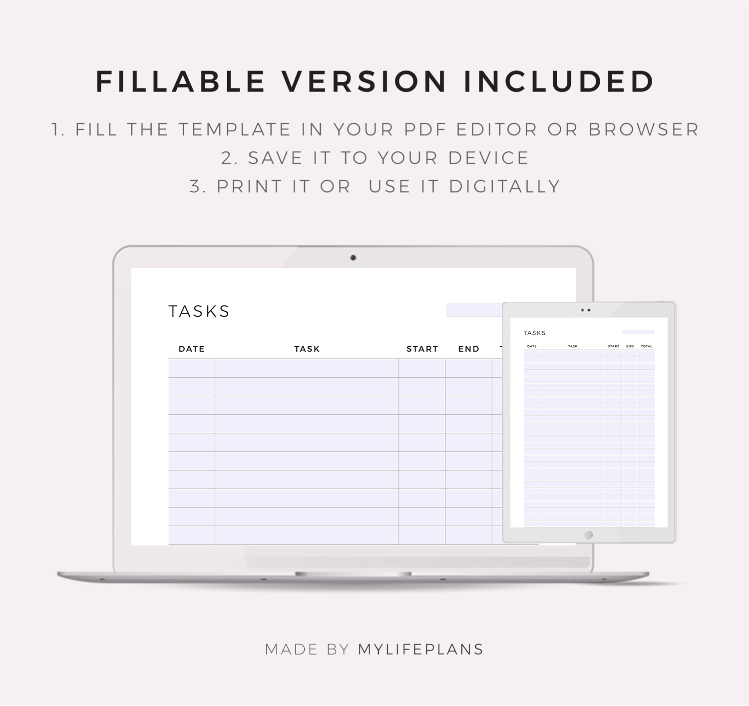 Task Time Tracker, Working Hours Tracker, Time Spent Log, Activity Tracker