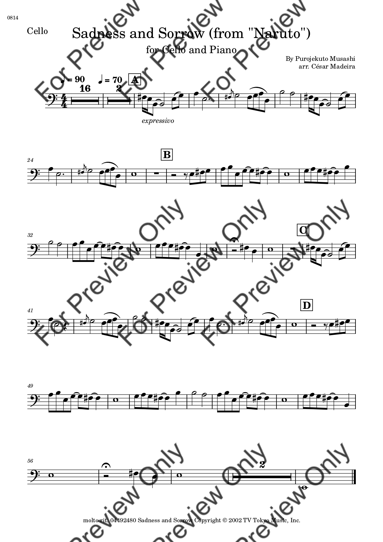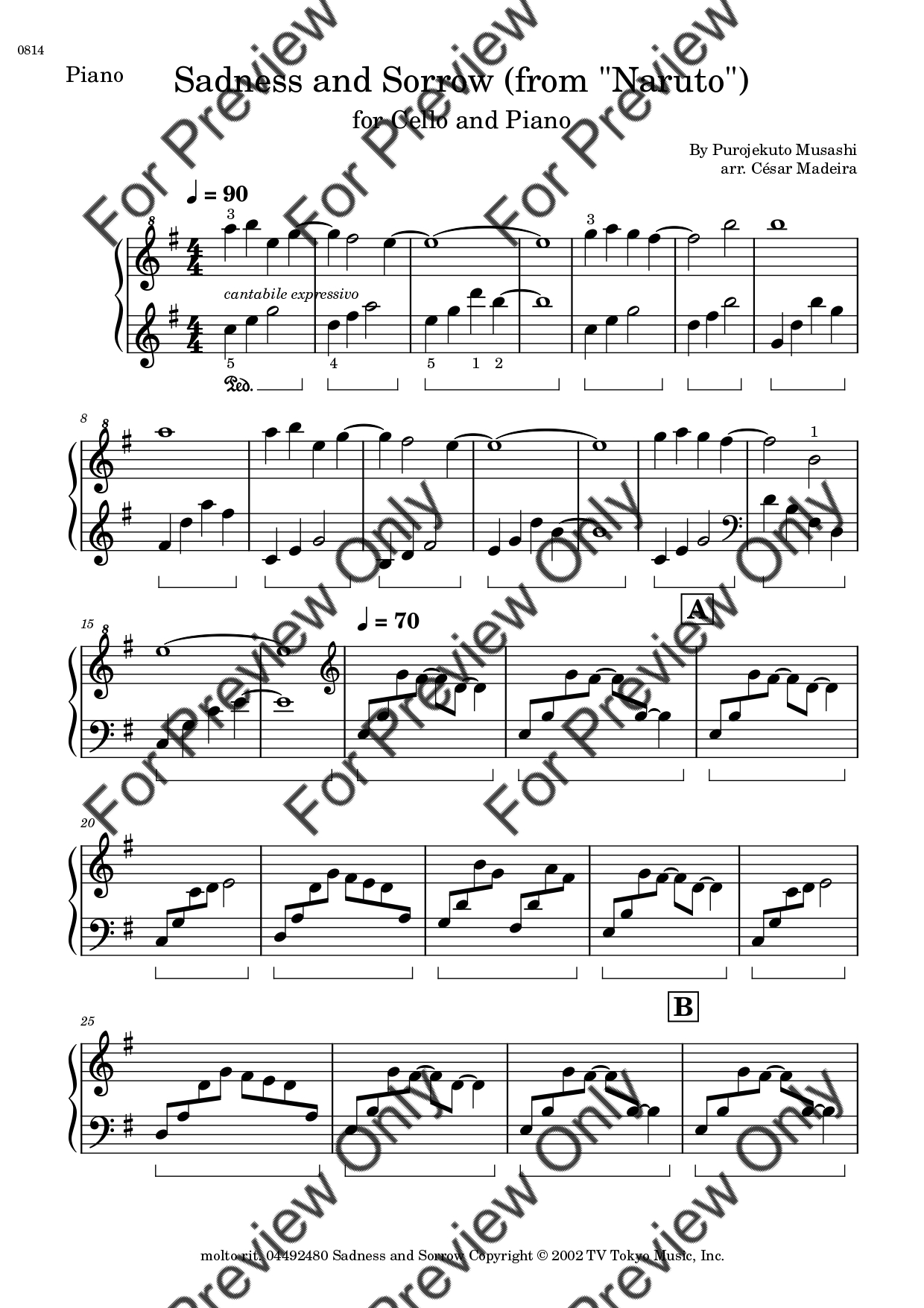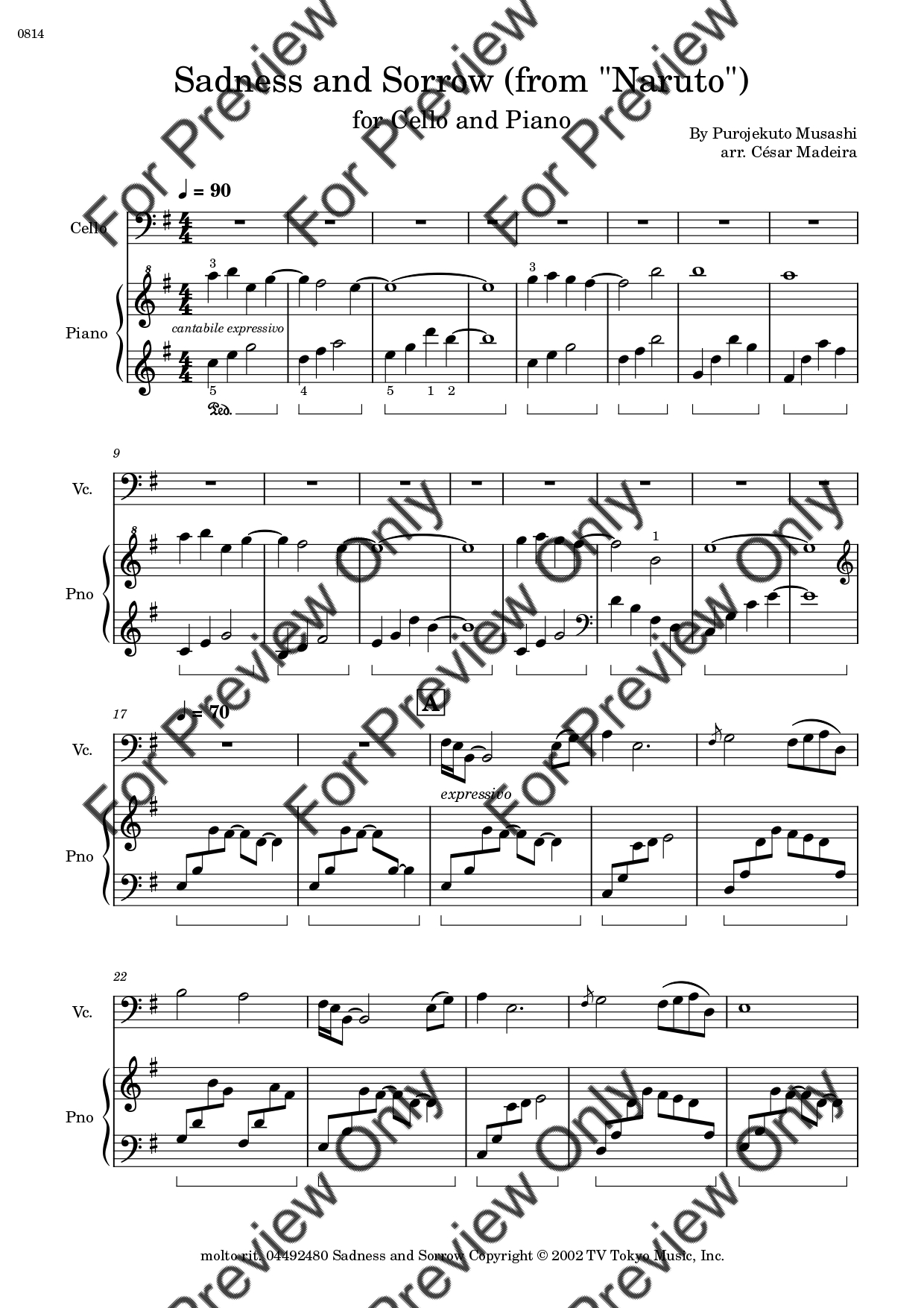 Sadness and Sorrow from Naruto. Arrangement for Violoncello and Piano. With Full Score and Individual Parts. Have fun!
