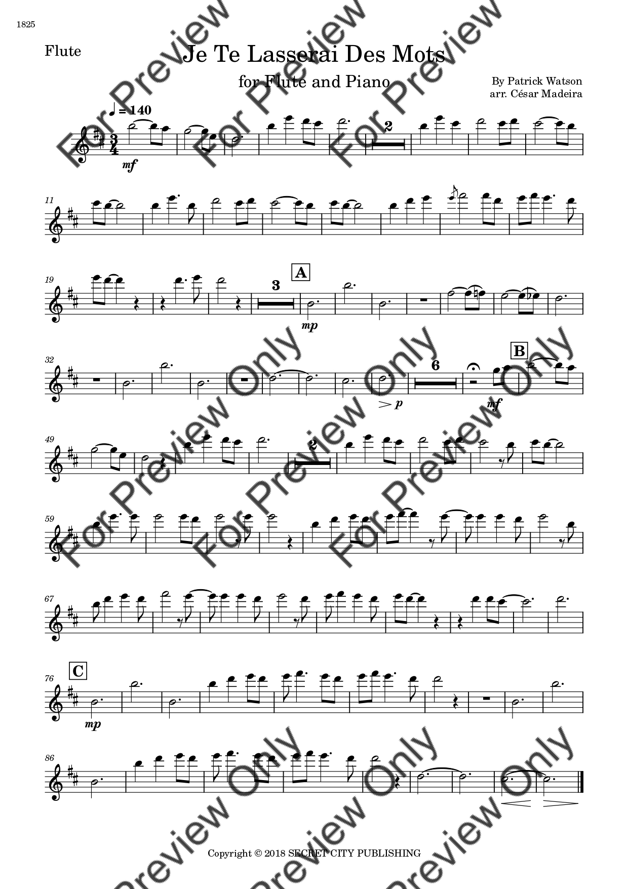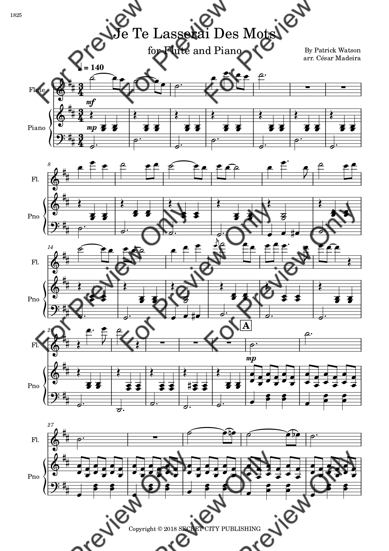 Je Te Laisserai Des Mots by Patrick Watson. Arrangement for Flute and Piano. With Full Score and Individual Parts. Have fun!