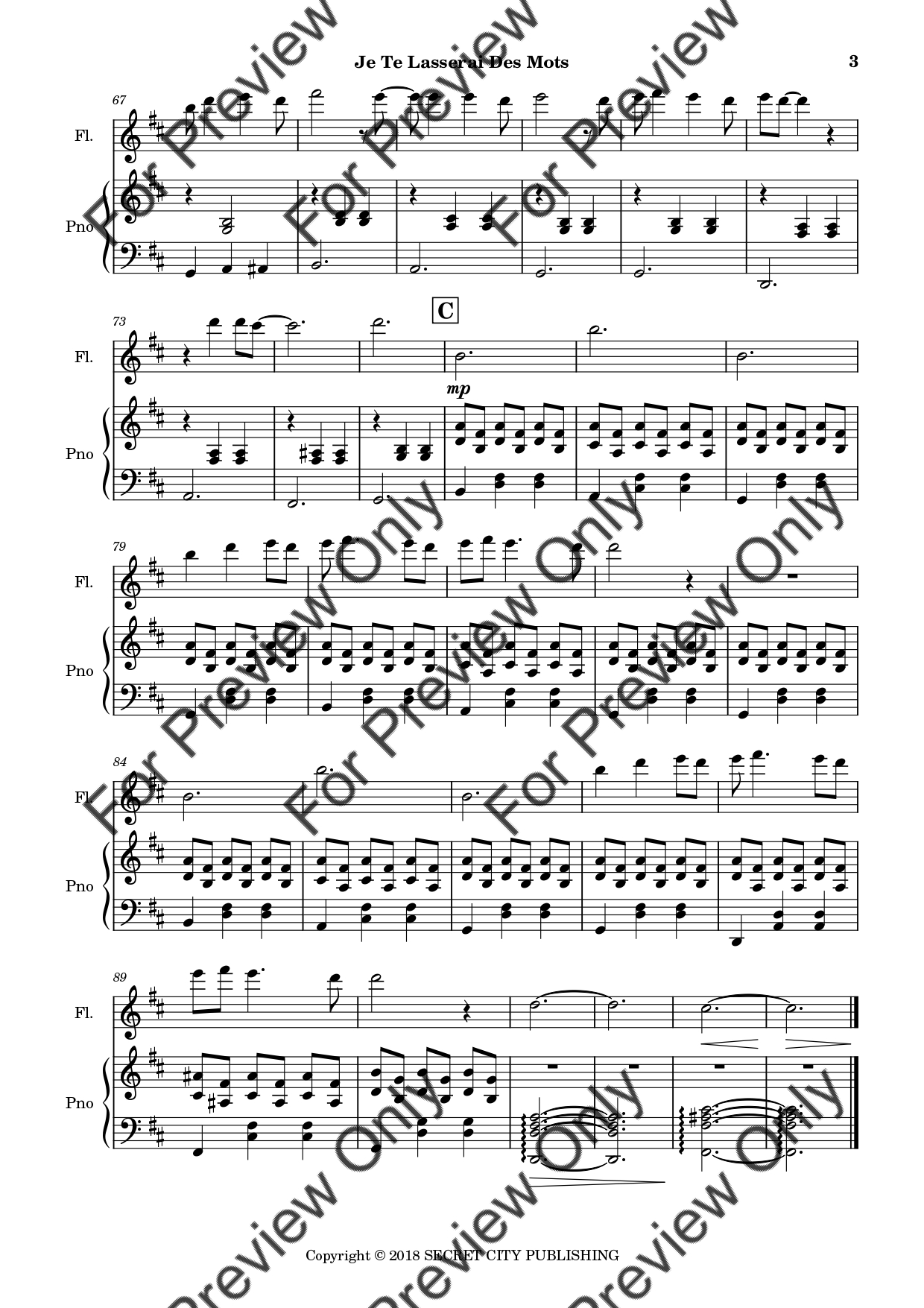 Je Te Laisserai Des Mots - Flute and Piano