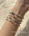 handcrafted with gemstones, swarovski crystal components, 18K white gold plated spacer, stainless steel beads & hardware