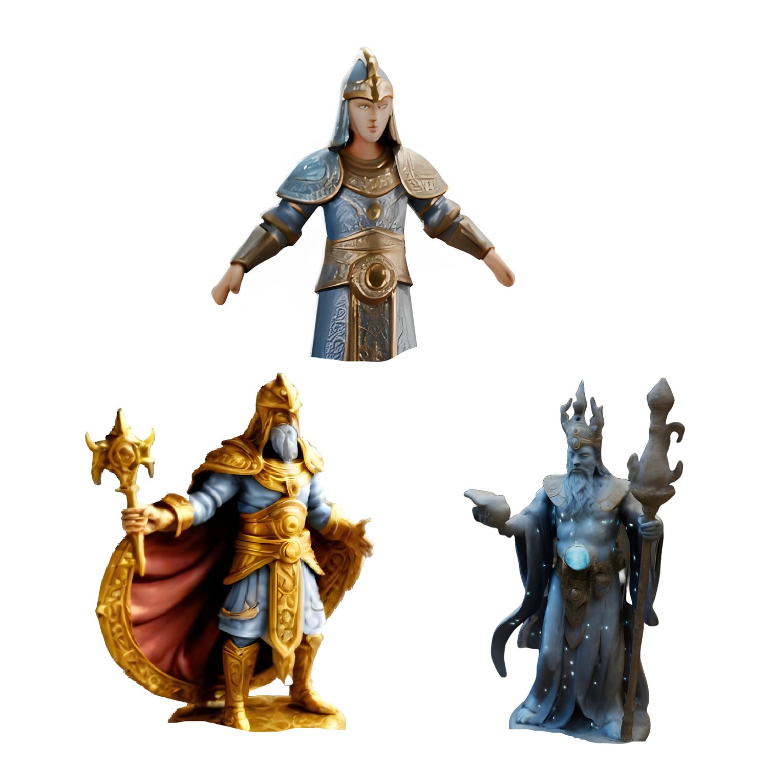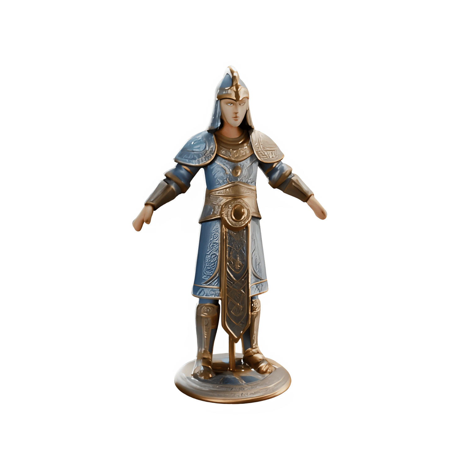 Post-process the model with gold, silver, or metallic paints to make the armor and weaponry shine. The base provides a solid foundation for display, and the figure's flowing cape adds a sense of movement and dynamism.