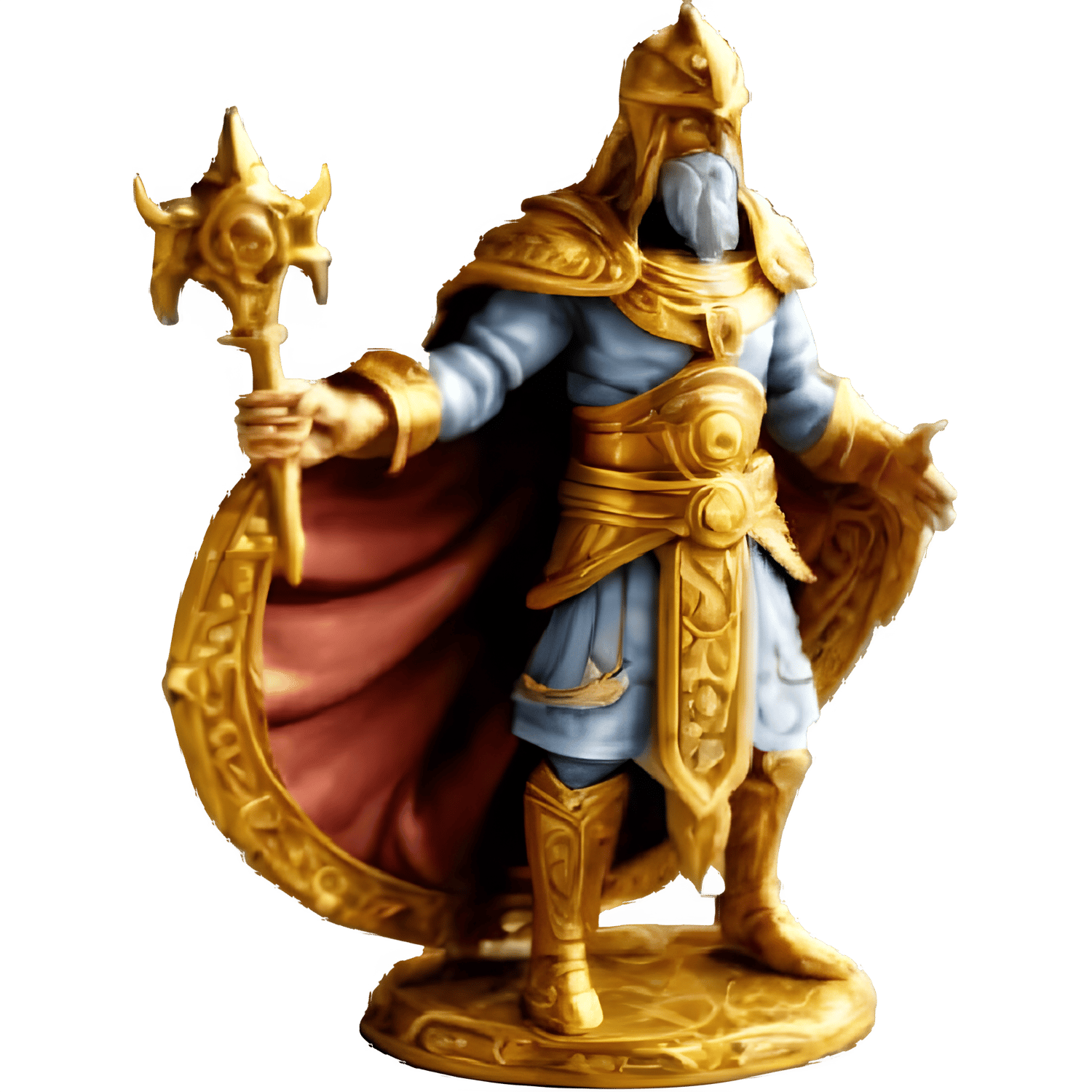 This Grand Paladin figure radiates power and righteousness, with a regal design befitting the protector of an ancient kingdom. Adorned in shining armor with intricate detailing on the helmet, shield, and staff, the model exudes both nobility and strength. The flowing cape and majestic pose make this a centerpiece for any tabletop game, diorama, or collection. Whether you’re a fan of heroic characters or need a powerful warrior for your fantasy campaigns, this paladin figure is ready for battle or defending the realm.