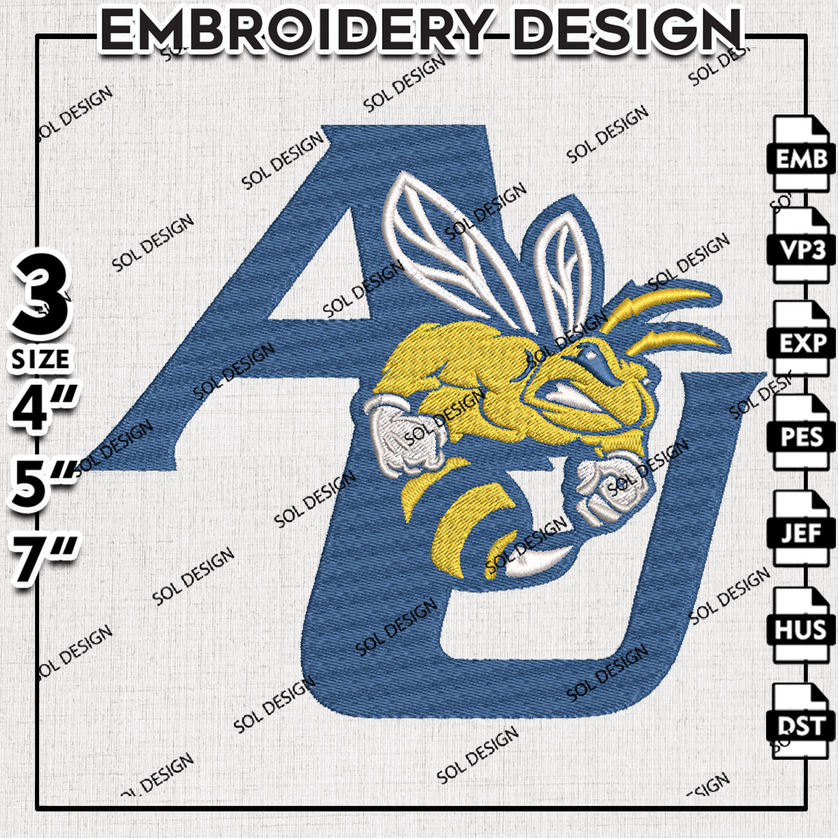 Allen Yellow Jackets NCAA College Football Team AU Letter Logo Embroidery Designs, Ncaa Embroidery Files, NCAA Allen University Team Logo Embroidery, Game Day Machine Embroidery Design, Digital Download