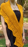 The Golden Ginkgo Shawl is a crescent shaped shawl that uses the ginkgo leaf lace stitch. Emulating the timeless strength of the ginkgo tree, this design celebrates the changing season with a golden knit texture so it’s a perfect wear for any time, any occasion.