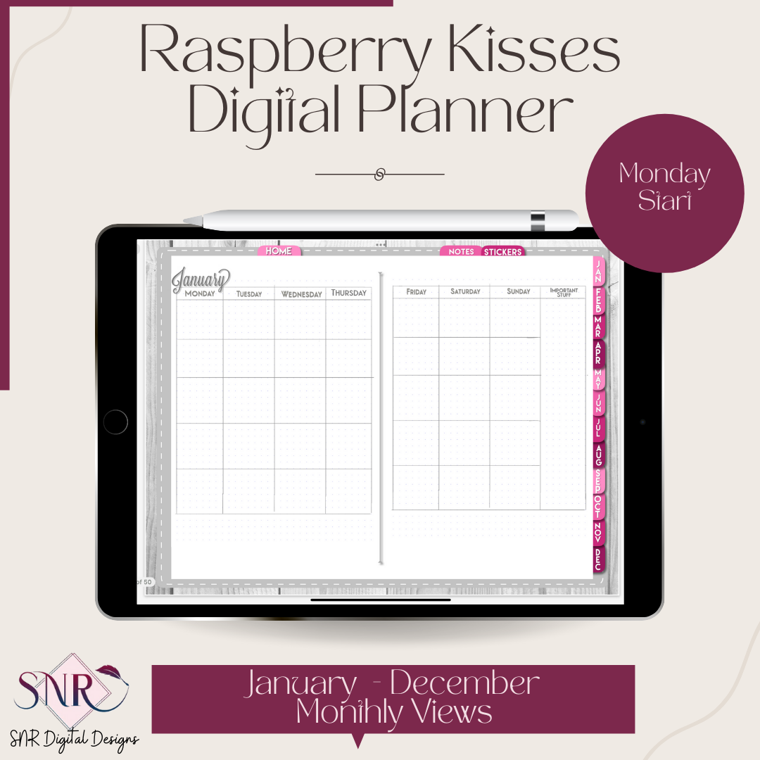 -Raspberry Kisses Undated Digital GoodNotes Planner.