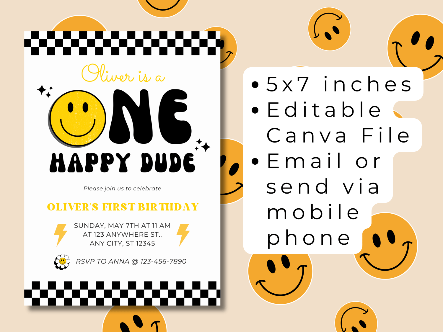 Our "One Happy Dude" birthday invitation printable, with its playful design and cheerful colors, is sure to get everyone excited for the festivities ahead.
