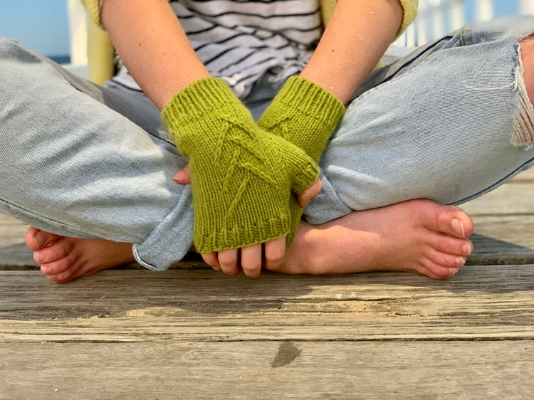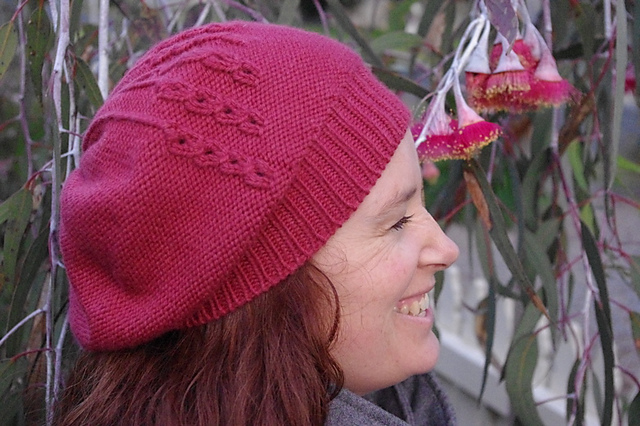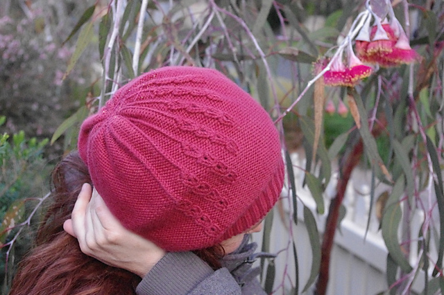 This is also a surprisingly quick and fun knit. It might look like there’s a heck of a lot of purling going on there, but not so! The hat is knit inside out with very minimal purling. This means a slight adjustment to the way the little mock cable is worked, but it’s super easy, worked without a cable needle and the stitch pattern is very intuitive. I love watching the little lavenders grow as more of them are worked into the pattern. The mock cable stitch pattern used in this slouchie hat is reminiscent of lavender drying upside down. For me this conjures up an atmosphere of calmness and serenity…. just what every knitter wants!