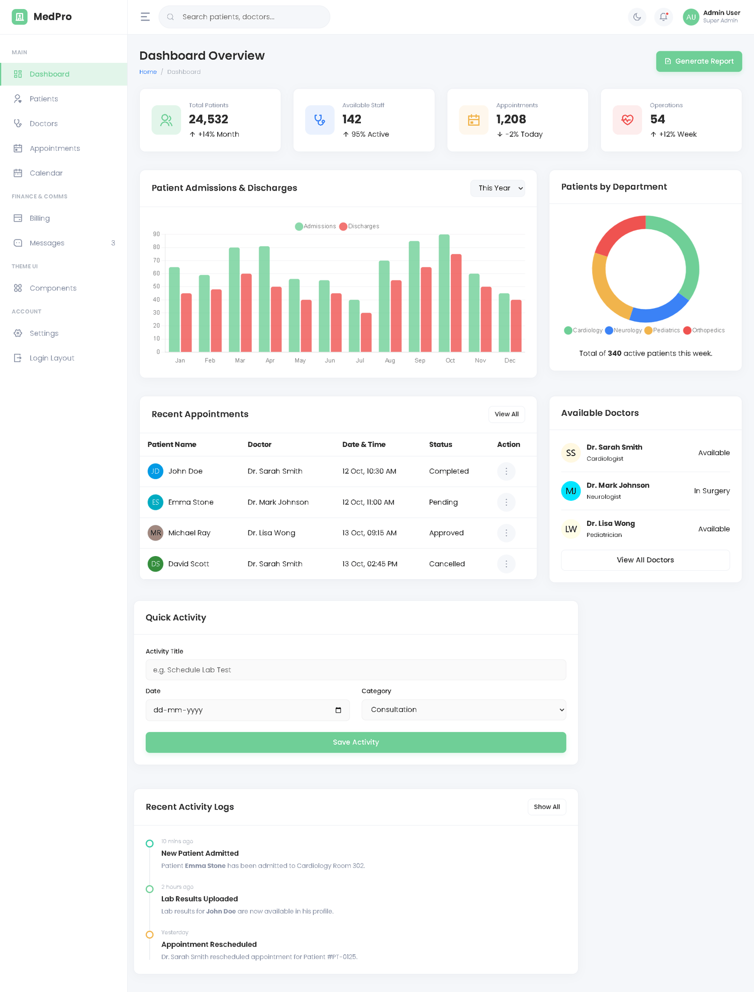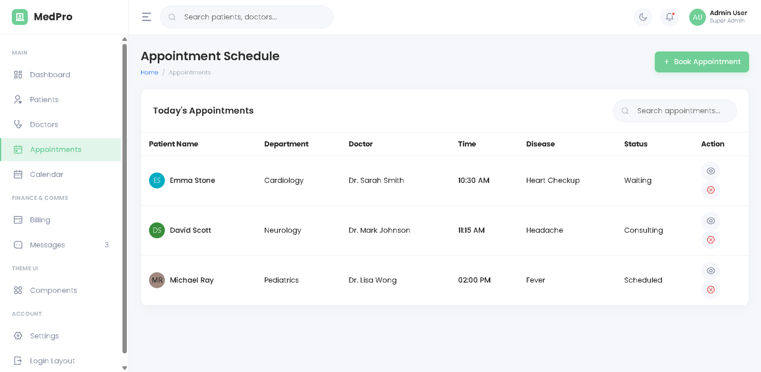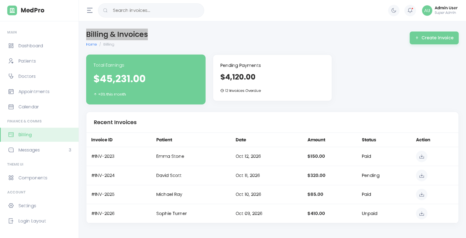 MedPro - Hospital & Clinic Management Dashboard HTML5 Template (Interactive Live Mockup)