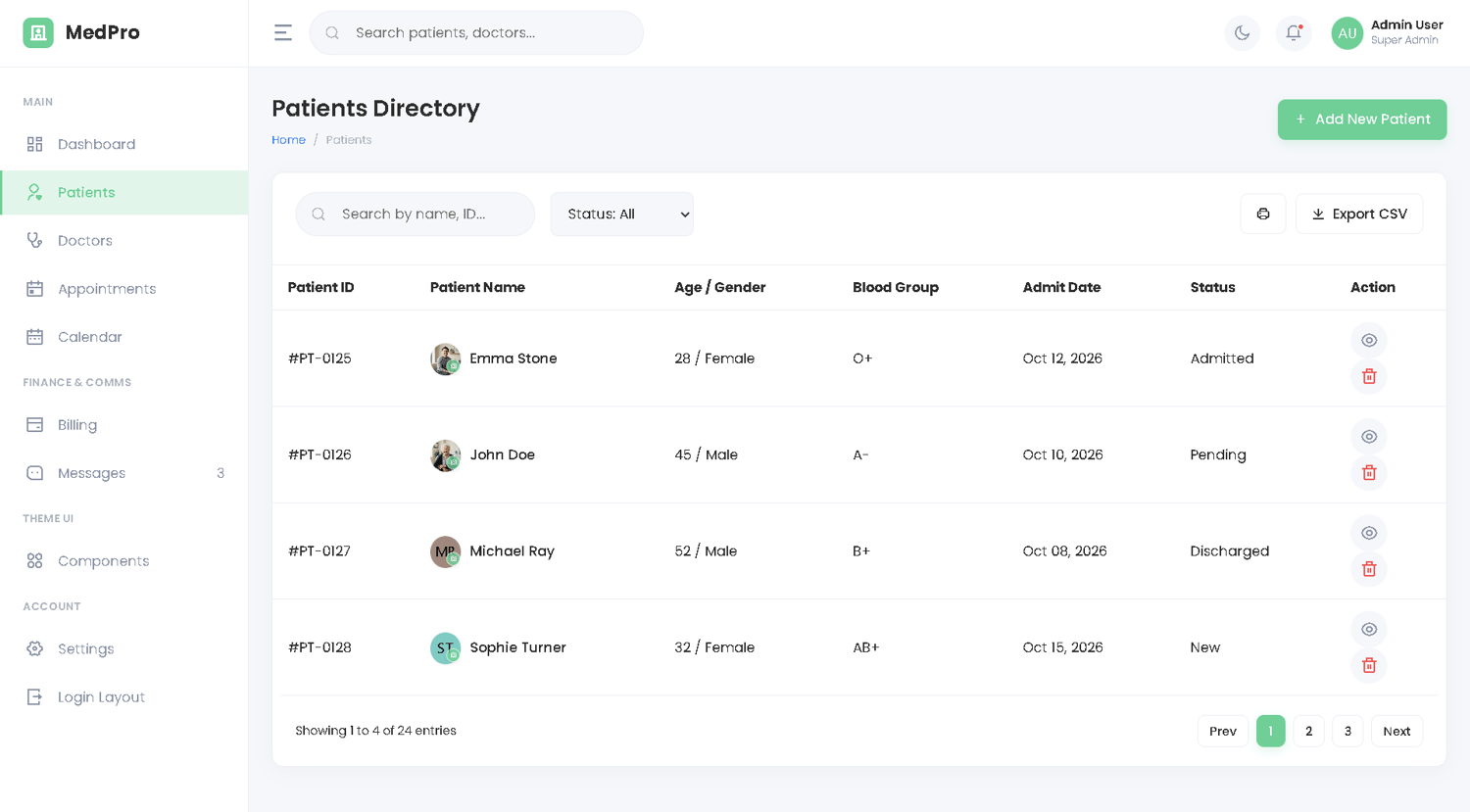 MedPro - Premium Hospital Dashboard HTML5 Template