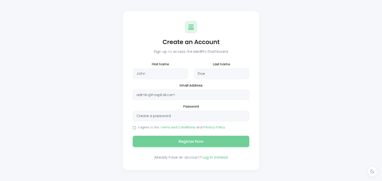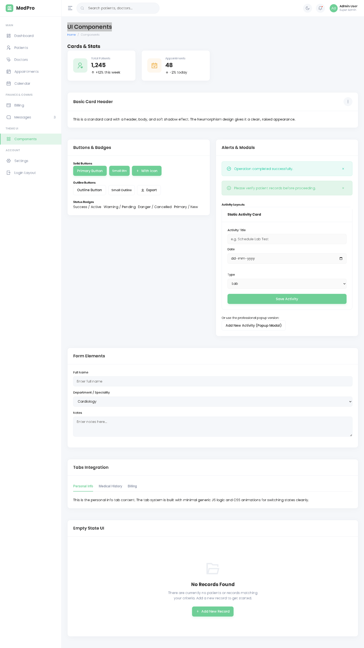 MedPro is a modern, high-performance Hospital Management Dashboard built with Pure HTML5, CSS3, and Vanilla JavaScript.