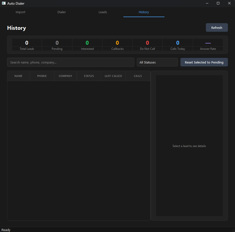 - Automatically calls your lead list one by one