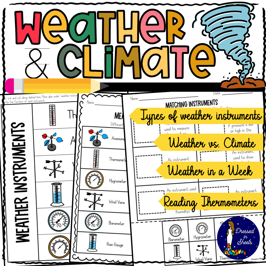 What is the difference between weather and climate? What instruments are used to keep track of the temperature or the amount of rain that falls? Students will be able to answer these questions and more with this work packet that uses anchor charts and activities to get the students thinking and involved.