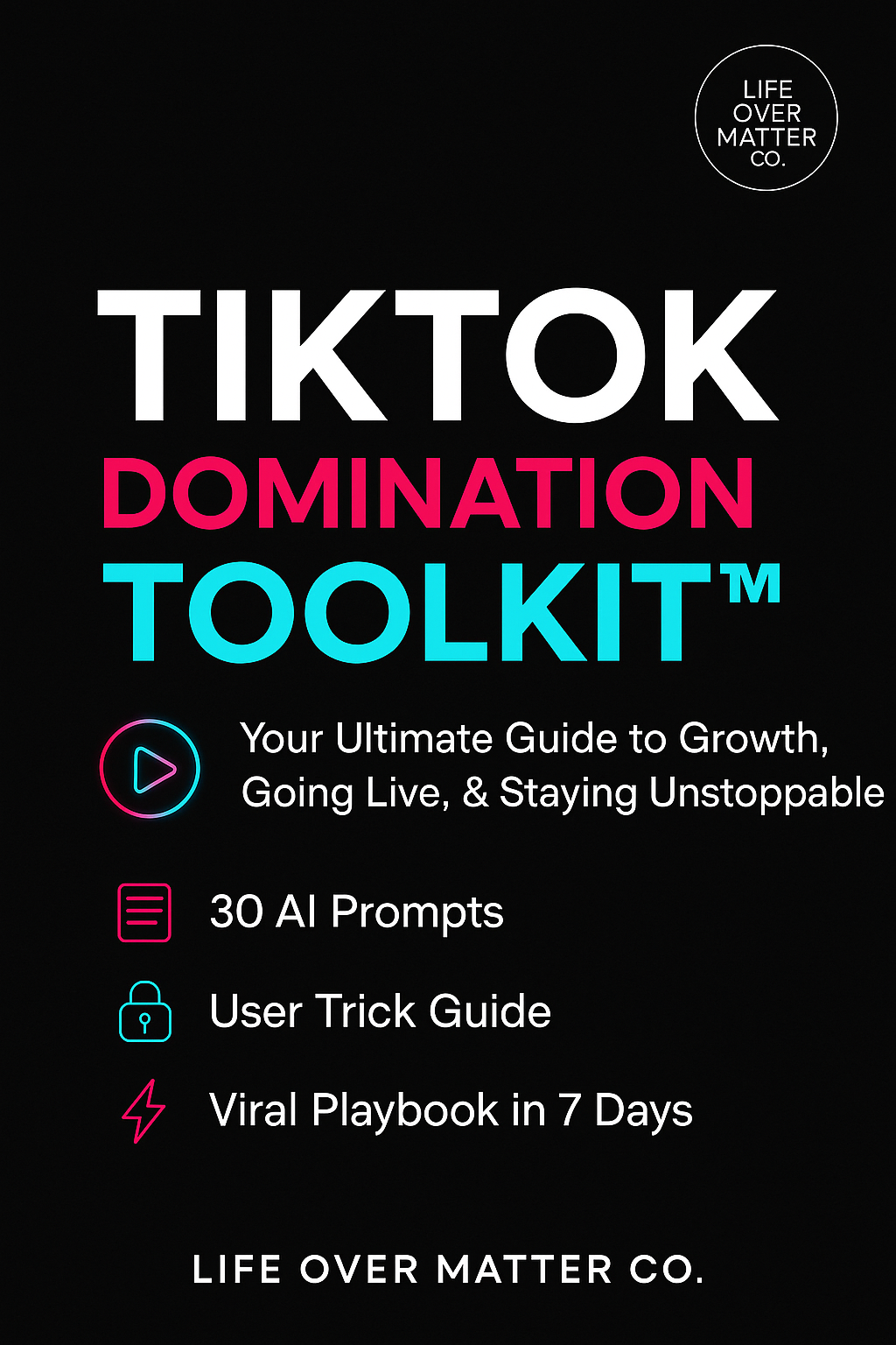 The TikTok Domination Toolkit™ is your ultimate free guide to mastering TikTok growth. Inside, you’ll get 30 copy-paste AI prompts for viral hooks, captions, and scripts, plus a banned-words cheat sheet, live-stream mastery guide, and a 7-day viral playbook. Learn what the algorithm actually rewards, the best posting times, what TikTok points and levels mean, and exactly how to go viral without guessing. Perfect for influencers, small business owners, and creators who want to grow fast, avoid bans, and turn followers into fans. This isn’t fluff—it’s a CEO-level TikTok growth system that feels like a paid course, completely free. Download now and start scaling your TikTok today.