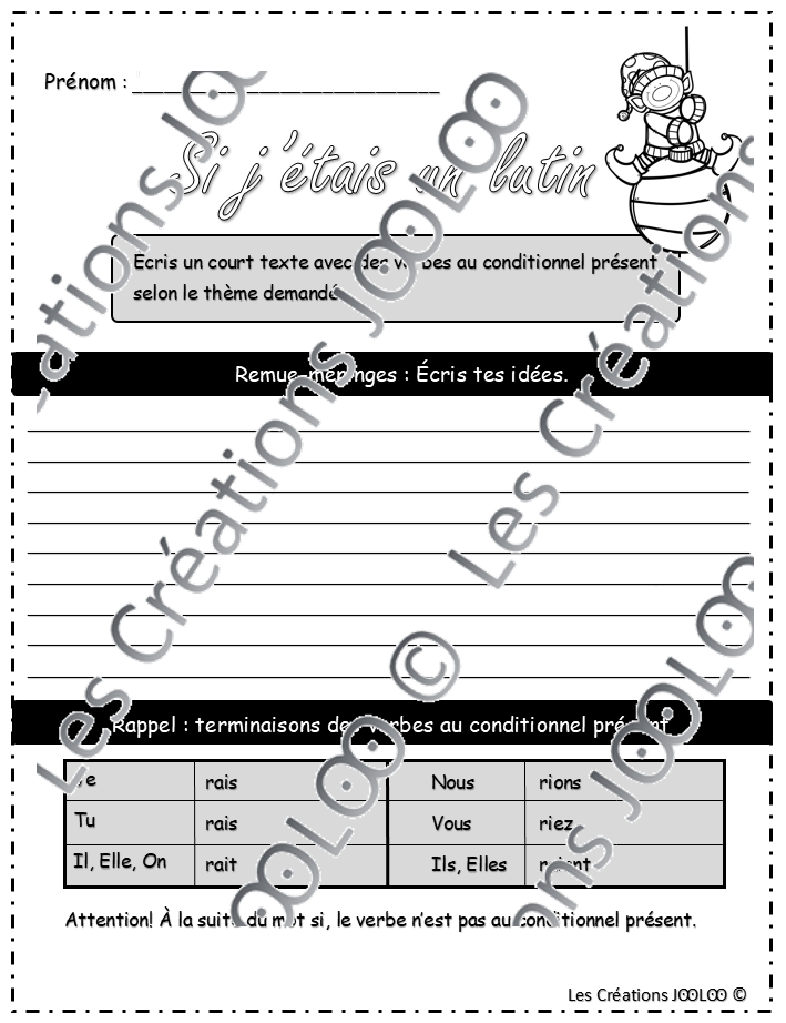 - 1 feuille pour rédiger sommairement ses idées et pour se rappeler comment former les verbes au conditionnel présent