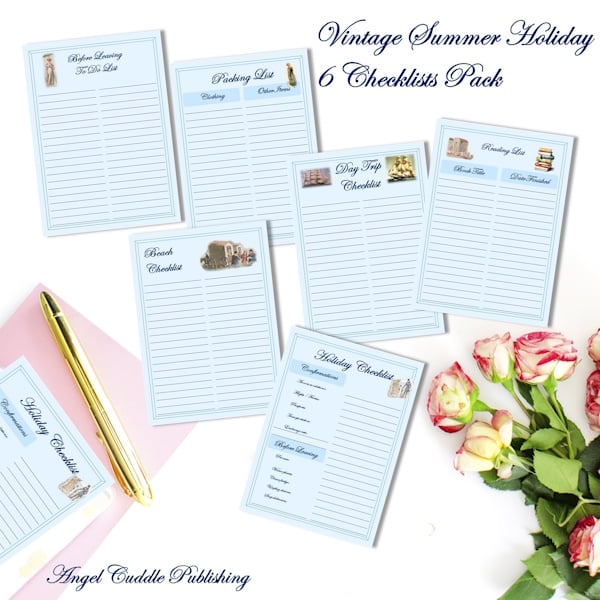 Regency Vintage Style 6 Printable Summer Holiday Checklists Pack A4 & Letter Sizes