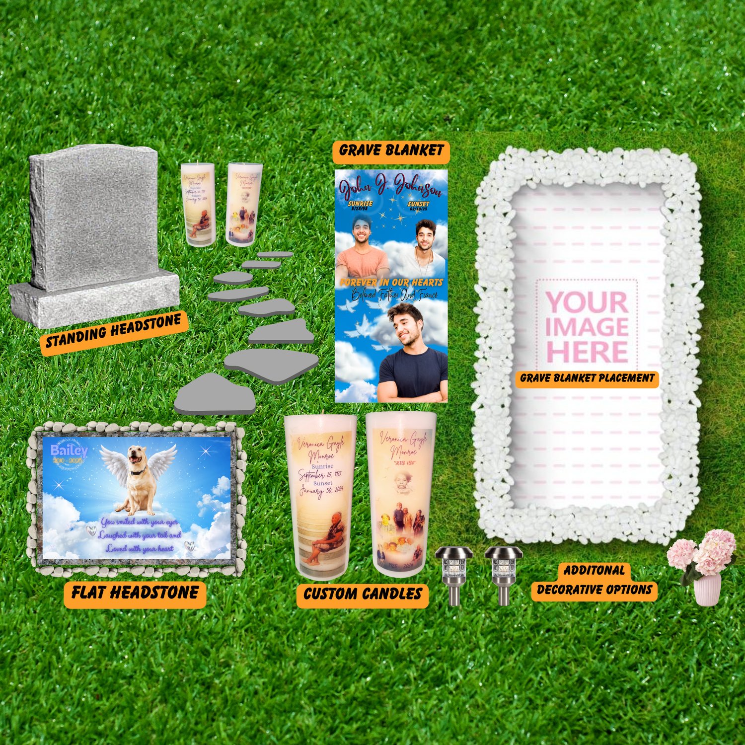 Every life deserves to be celebrated with love and dignity. We can create headstones, memorial favors, grave blankets; tribute pieces and personalized keepsakes that honor your loved ones memory.