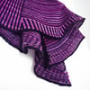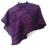 The shawl consists of two different kind of sections, horizontal and vertical stripes. The vertical stripes are worked like mosaic stitch, slipping the stitches that are not the working color. This results in a slightly tighter fabric and before blocking the horizontal stripes sections might seem a bit looser than the vertical stripes, but blocking will fix that. The rim is worked with the same method as the vertical stripes. The outer rim and neck line have an i-cord finishing.