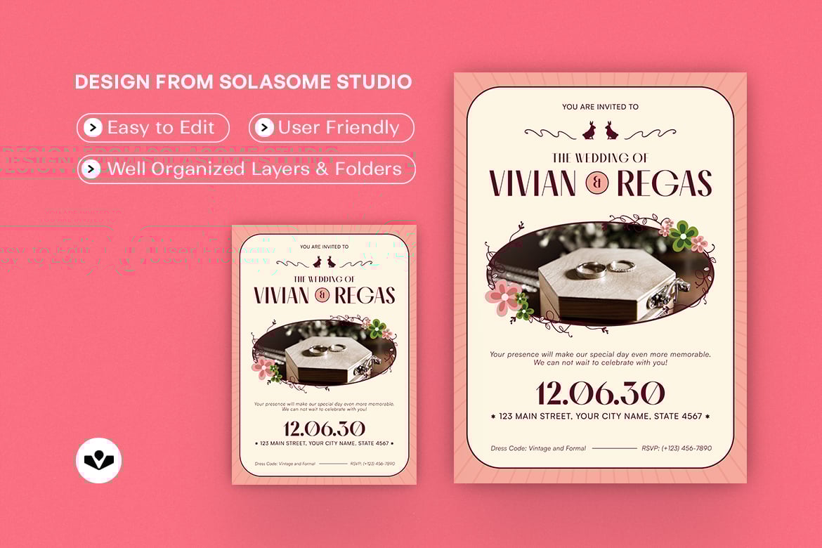 This is an invitation design template - also be used for design various project design invitation. It's perfect for couples seeking sophisticated invitation solutions. This design will make your special day unforgettable and memorable event.