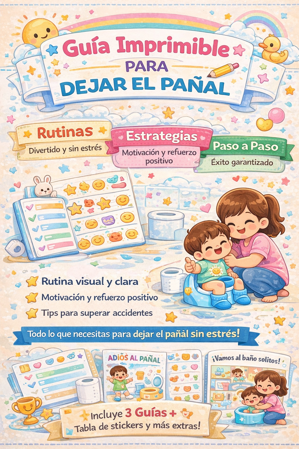 Transforma el proceso de dejar el pañal en una experiencia positiva, respetuosa y libre de estrés con esta guía imprimible diseñada para padres y cuidadores.
