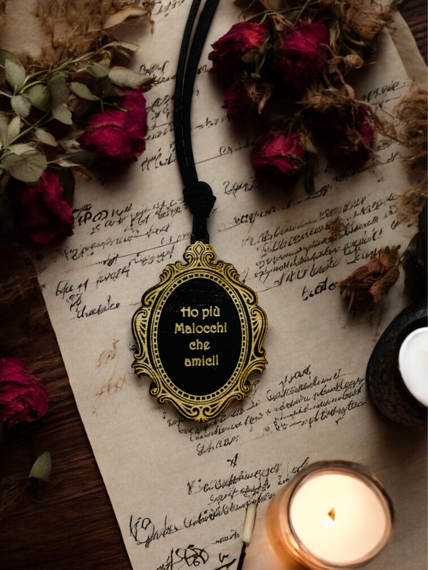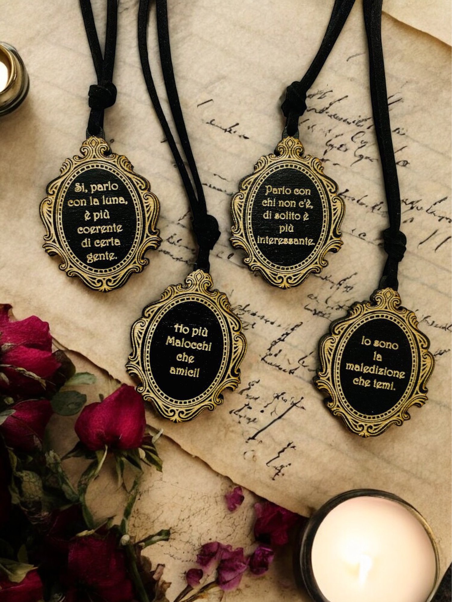 Collana in legno incisa “Incantesimi da indossare”