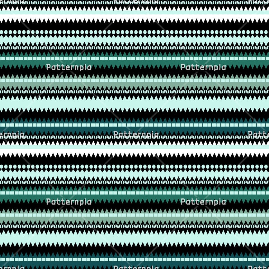 Sophisticated horizontal stripes featuring geometric zigzag and dot motifs in a refreshing mint and emerald palette.