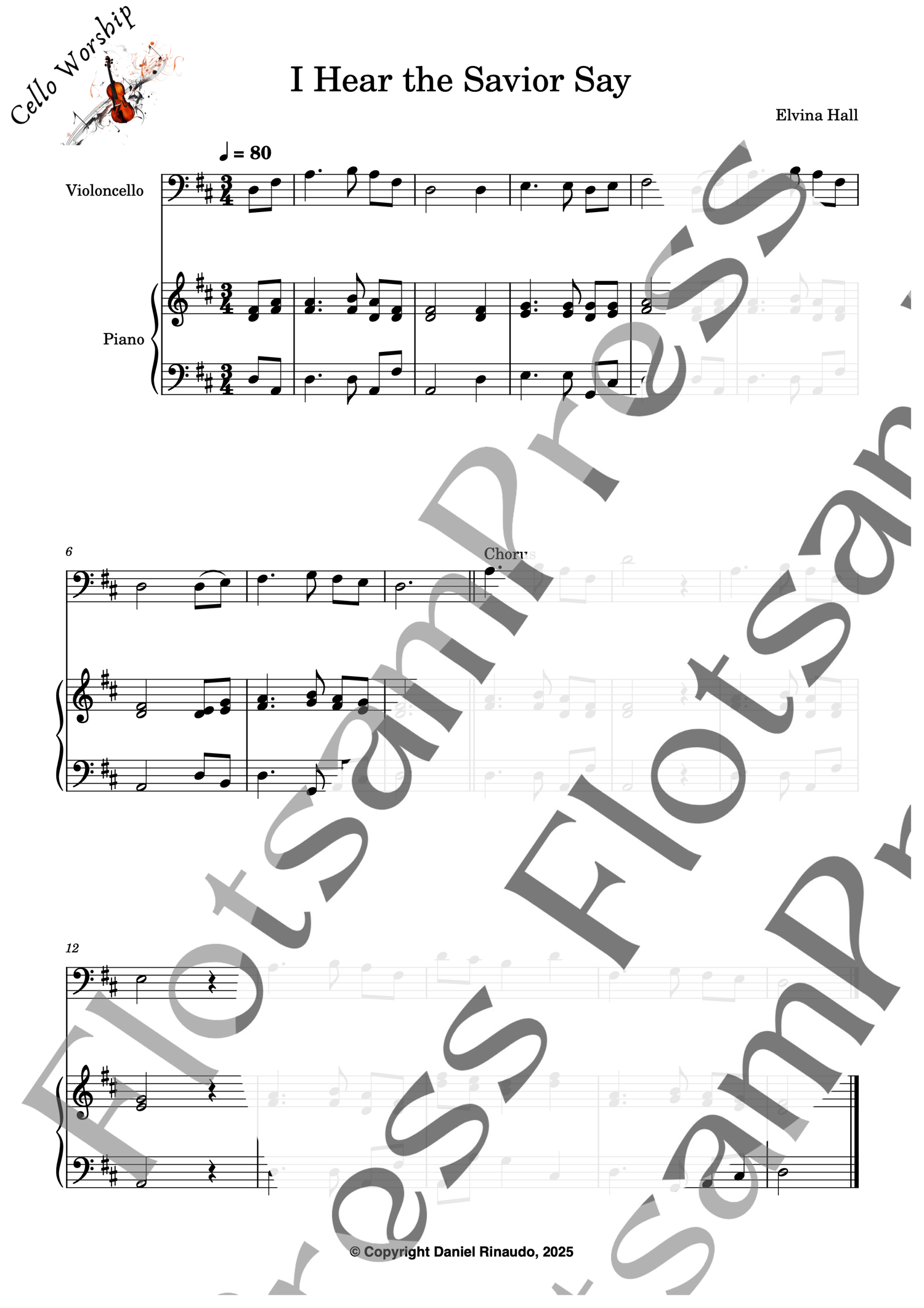 This arrangement of I Hear the Savior Say is written for beginner to lower-intermediate cello players, with a simple and supportive piano accompaniment. Perfect for church services, lessons, or home practice.