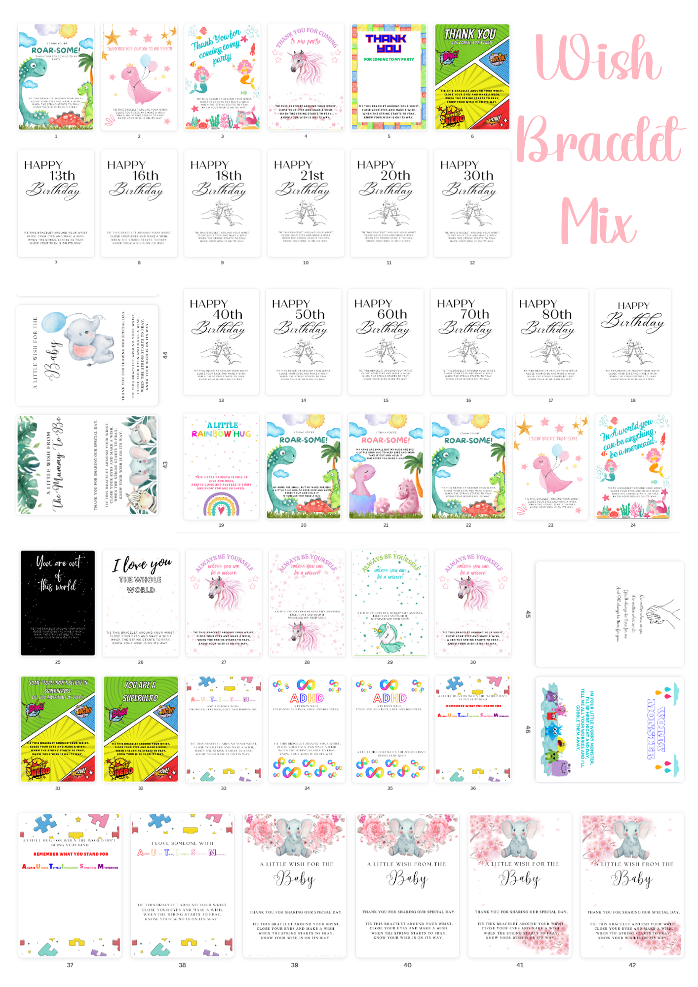 Wish Bracelets/Hugs - 46 Variations - Birthday and Standard