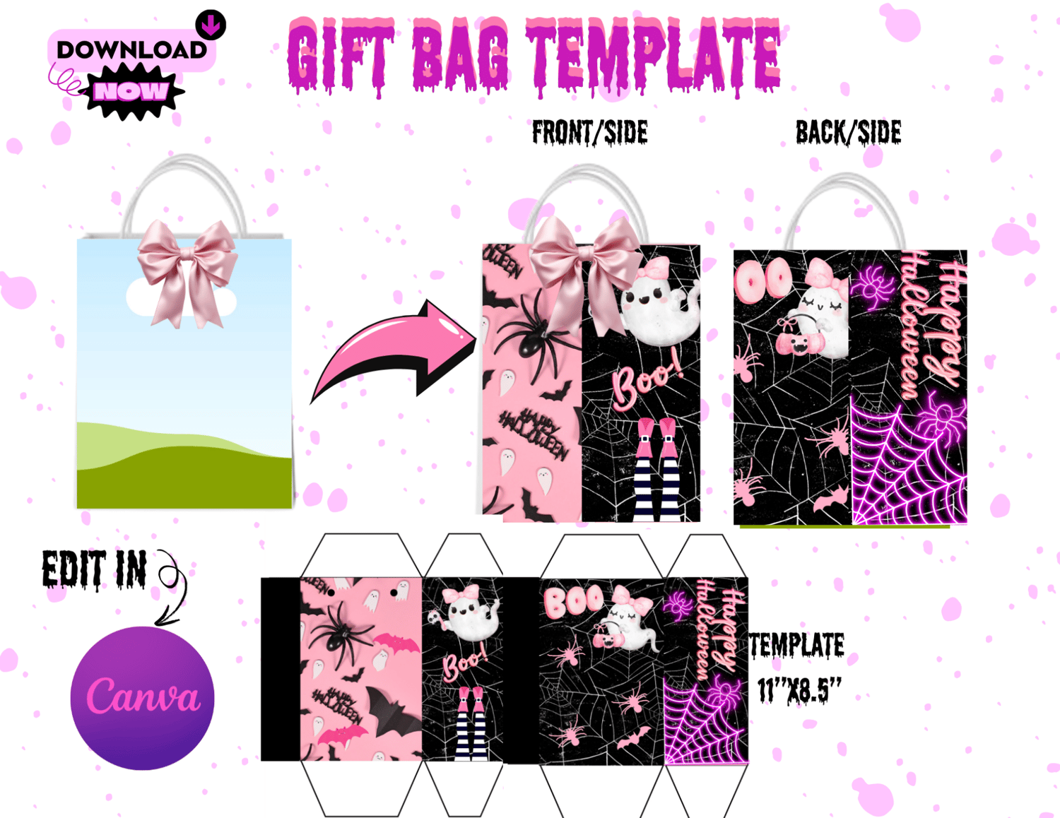 This is a digital download. You will receive a pdf that includes a size 11x8.5” gift bag template with editable design.