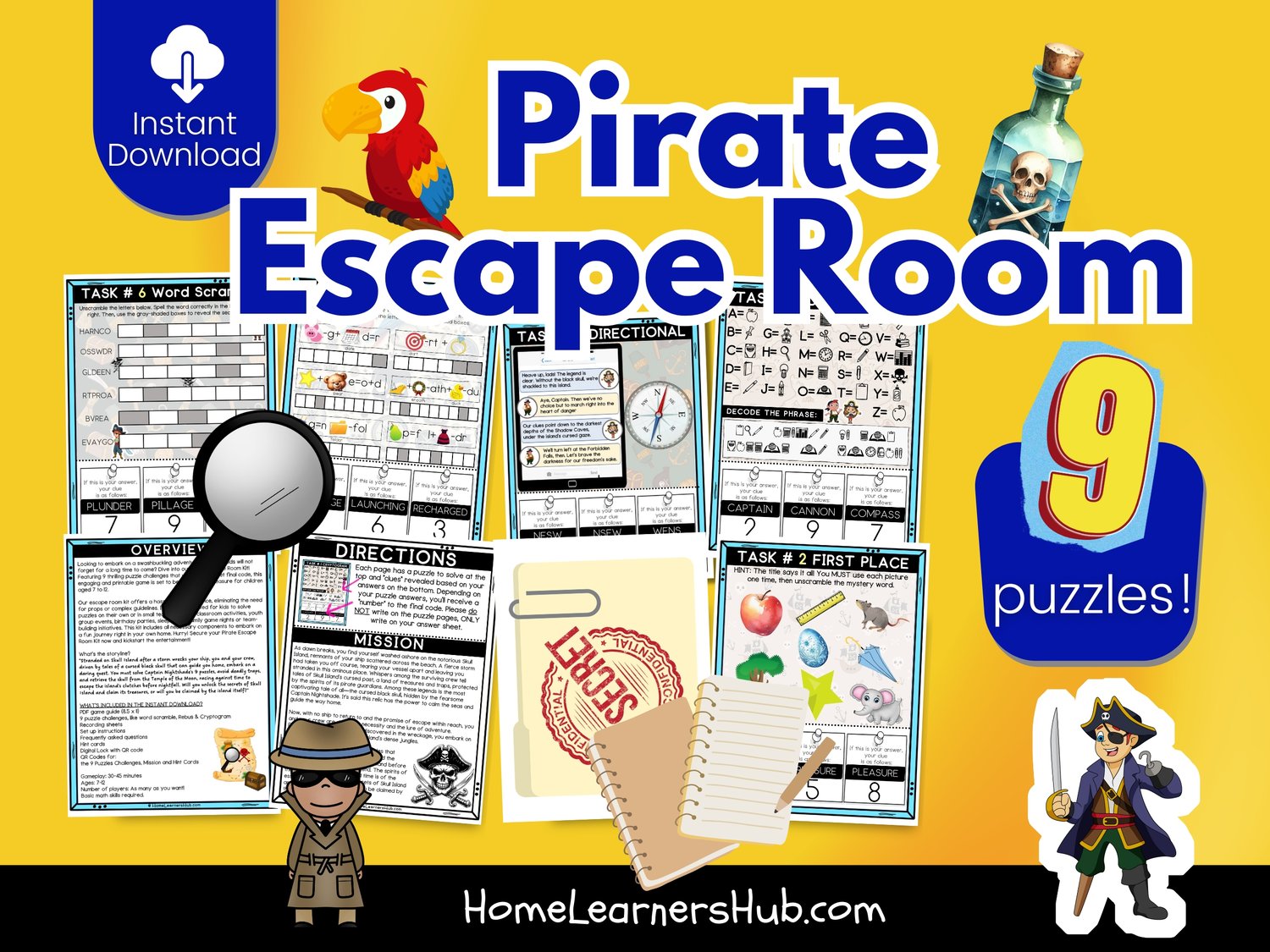 Looking to embark on a swashbuckling adventure that your kids will not forget for a long time to come? Dive into our Pirate Escape Room Kit! Featuring 9 thrilling puzzle challenges that uncover a secret final code, this engaging and printable game is set to be an absolute treasure for children aged 7 to 12.