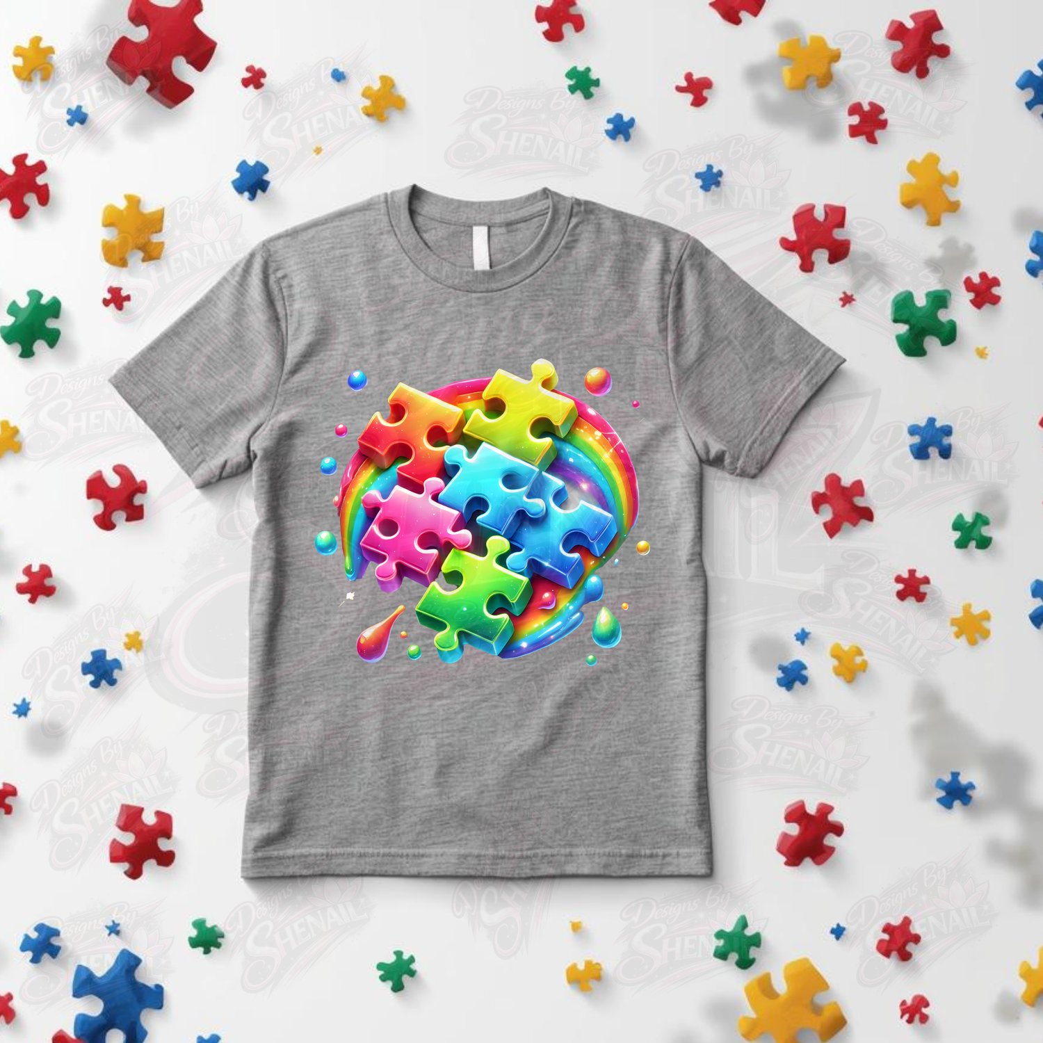 This vibrant rainbow puzzle design is a bold and uplifting way to show support for autism awareness and neurodiversity. Featuring glossy, colorful puzzle pieces layered over a bright rainbow splash, this design instantly grabs attention and brings a message of inclusion to life.