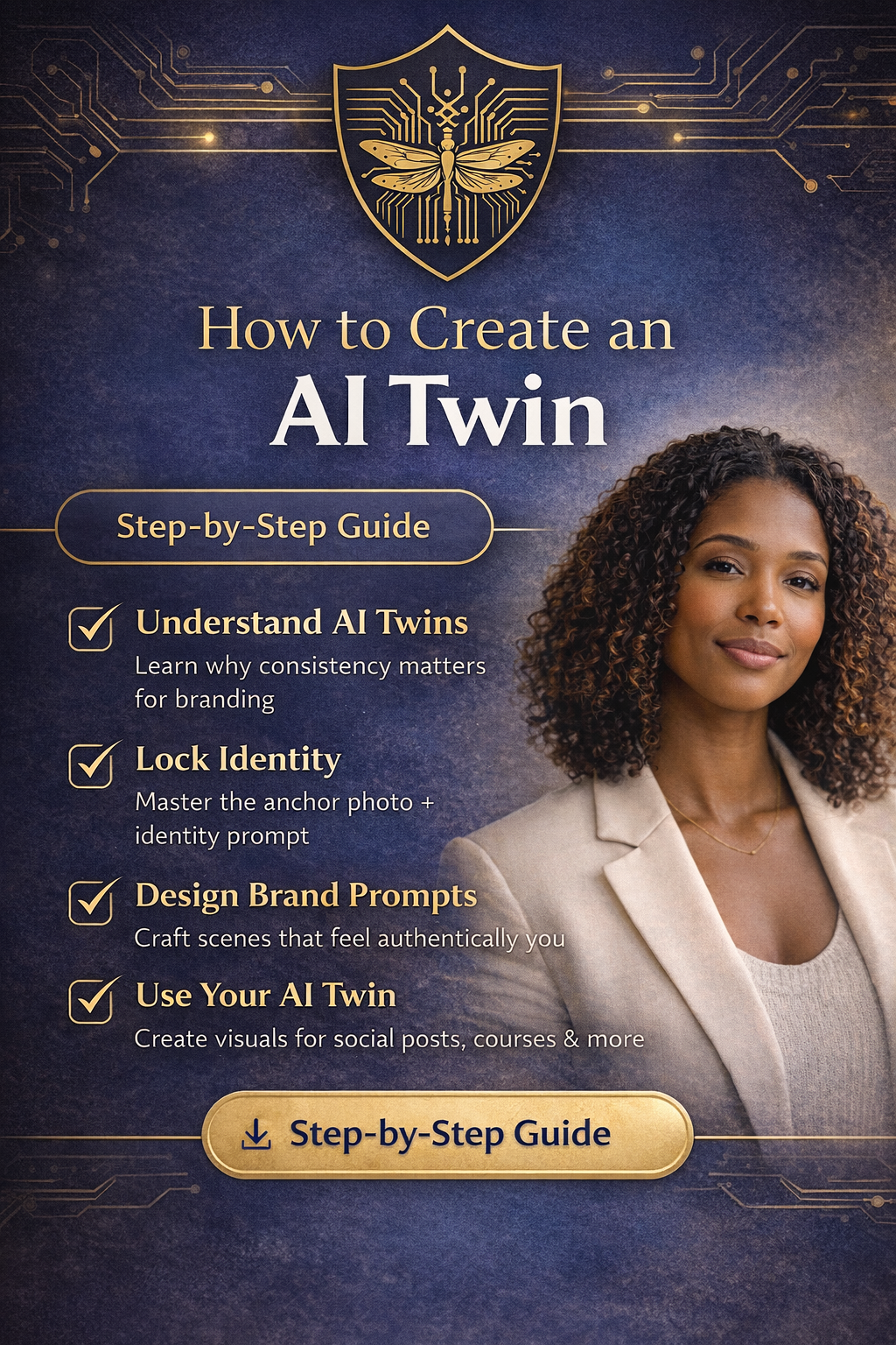 This digital download is a step-by-step guide designed to help entrepreneurs, creators, and service-based brands build a consistent AI twin they can use across their messaging, visuals, and content.
