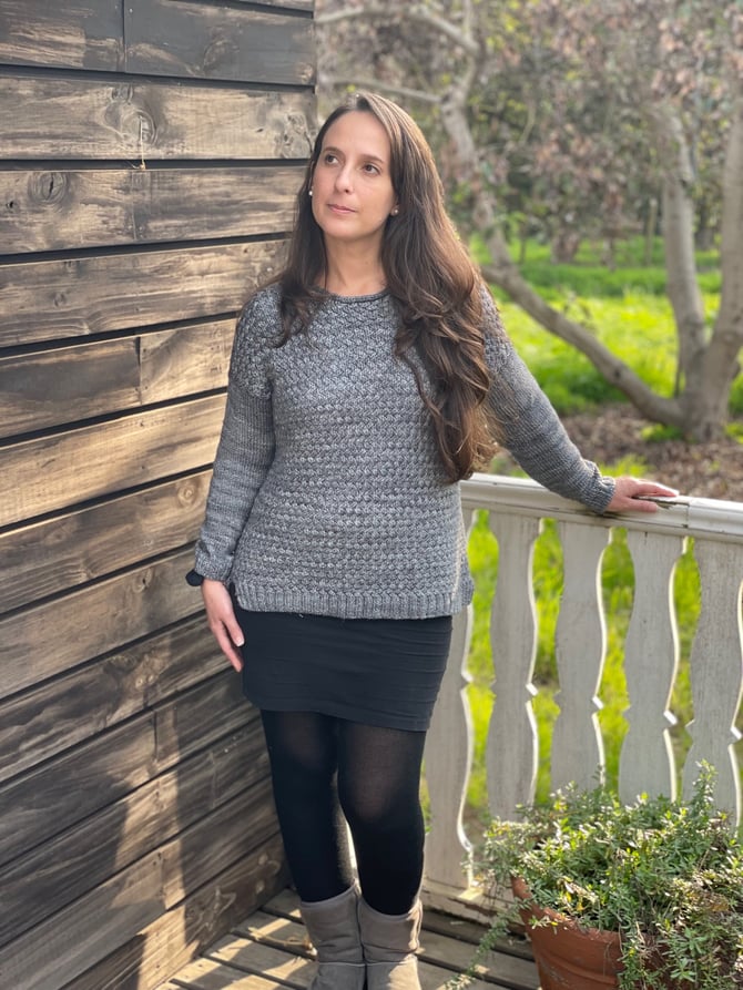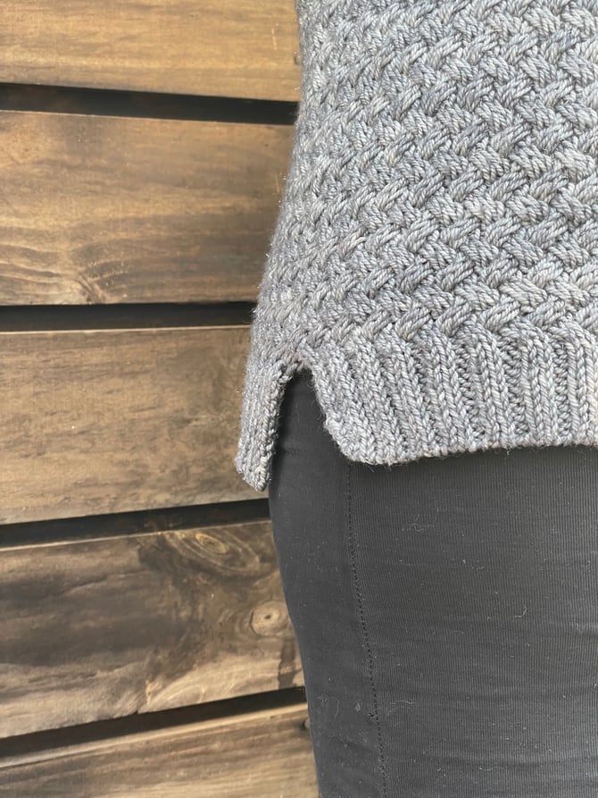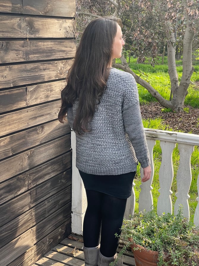 The Carnaúba sweater is a fun and interesting pattern, worked in a basket-weave cable stitch pattern in the round from the bottom up.