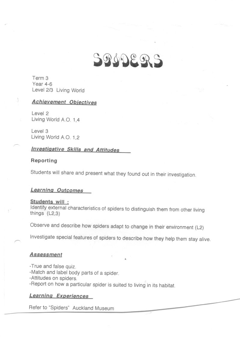 Spiders Teaching unit resources