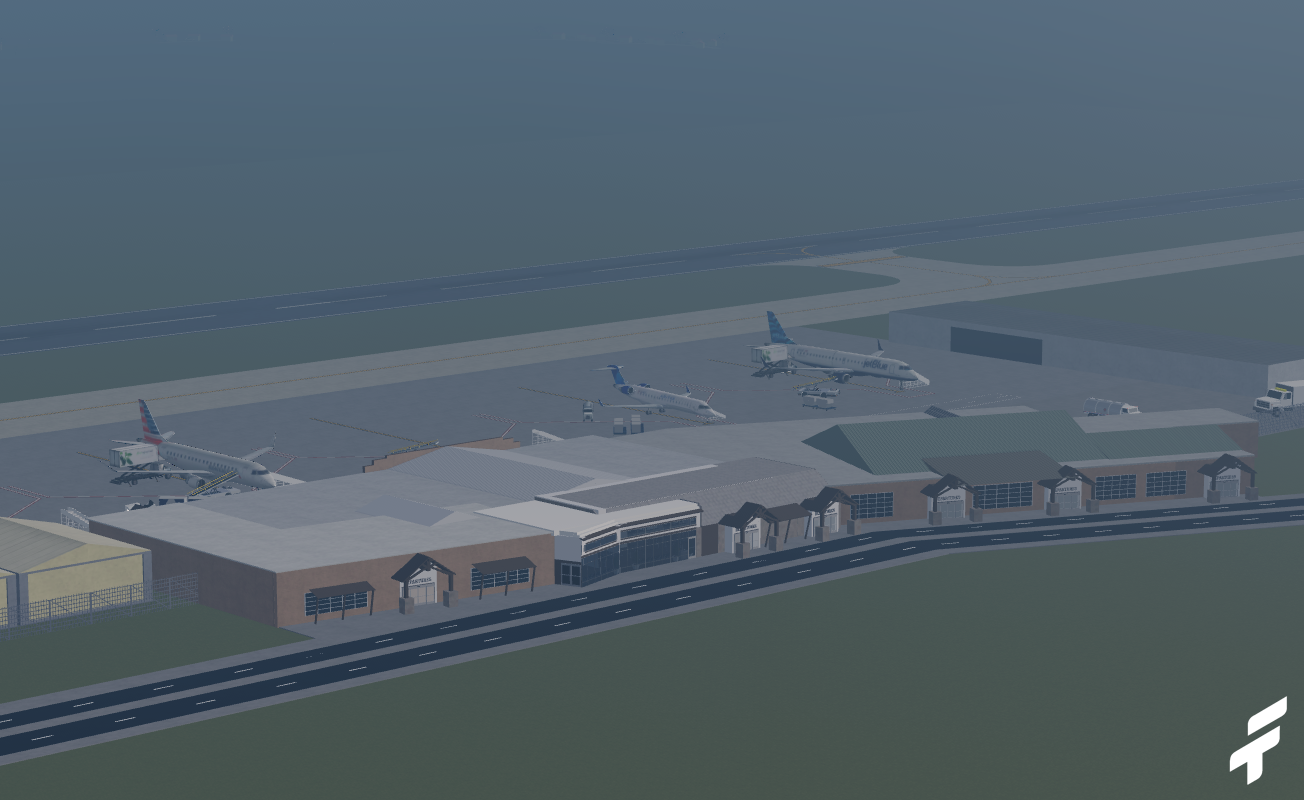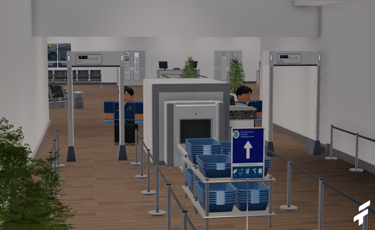 -Quality interior, including check-in area, gate area, and security.