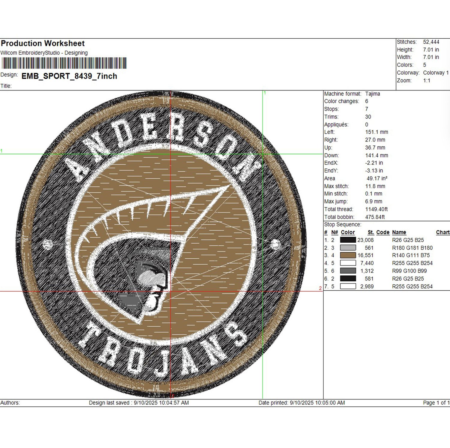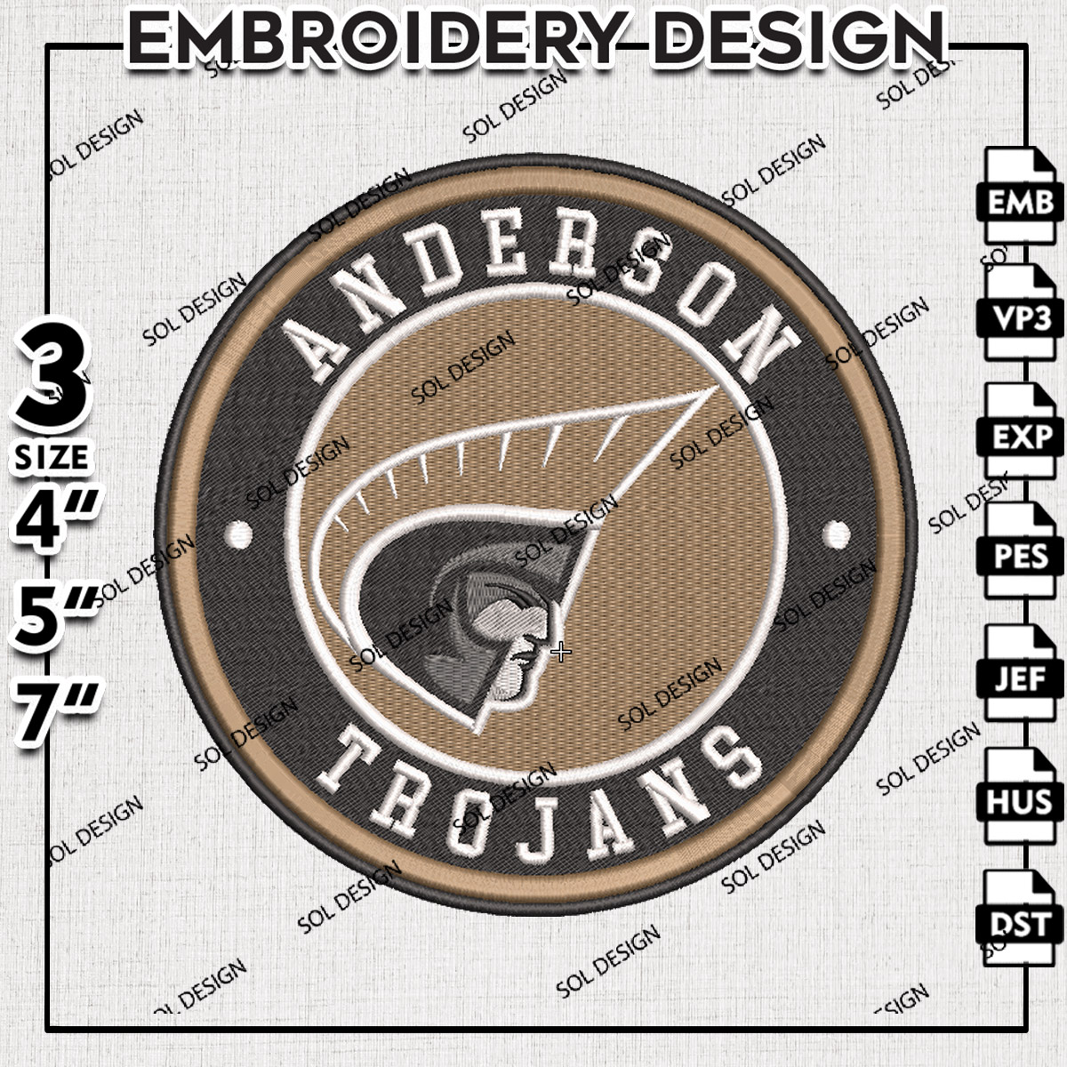 NCAA Anderson Trojans College Football Team Round Logo Embroidery Designs, Ncaa Embroidery Files, NCAA Anderson Trojans Football Team Logo Embroidery, Game Day Machine Embroidery Design, Digital Download