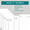 You can edit this design on Sejda(Online Pdf Editor Website). After the purchase, you will be able to download the pdf containing the design. Then go to https://www.sejda.com/ and click on" edit a pdf document" and upload pdf from your downloads. After editing the pdf click on "Apply Changes" and download the edited pdf. You can easily change already written texts or you can write new texts.